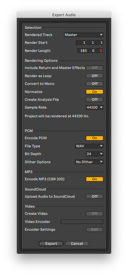 Finally, when you export your mix (or any audio) Live will encode a constant-bit-rate 320 MP3 file along with your WAV/AIFF file, for easy uploading and sharing with clients or bandmates. For years I had a Hazel task setup specifically for this, but now it's great to have that built-in.